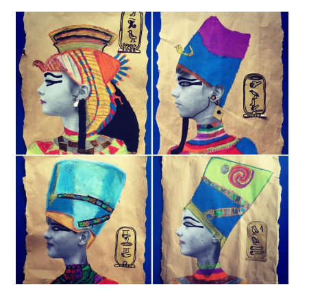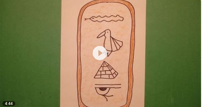You could use a wet teabag to rub on white paper first! Notice that the artists have added a royal cartouche which shows their name in heiroglyphs to complete the portrait. To remind us of how to draw cartouches, watch the video from a previous lesson below.