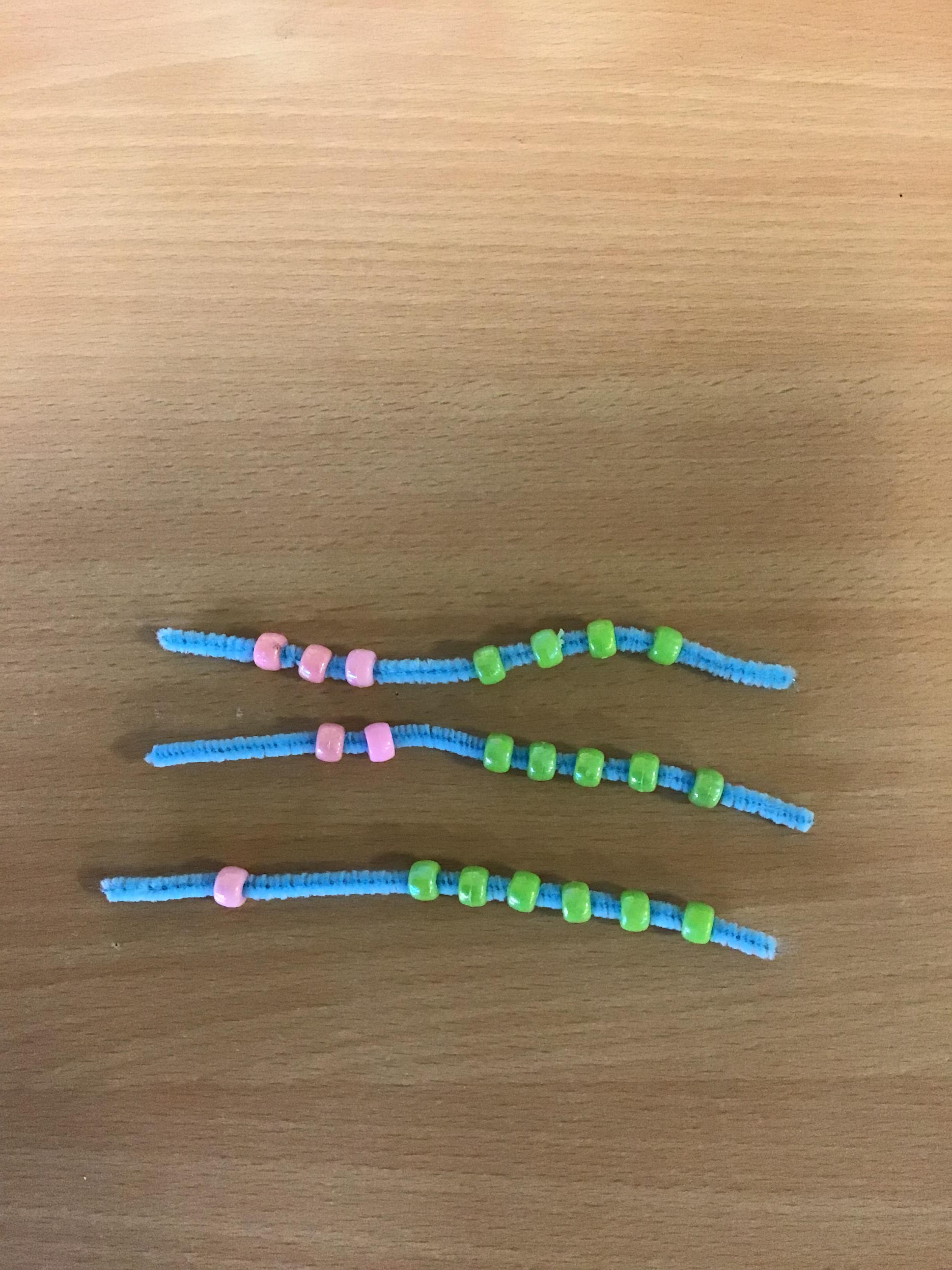 Afterwards, I wonder if you could find all the different ways you can make seven using two different numbers. Have a look at my example, I chose to use beads to represent 1 + 6 = 7, 2 +5 =7 and 3+ 4 = 7. Have a go at doing this too!