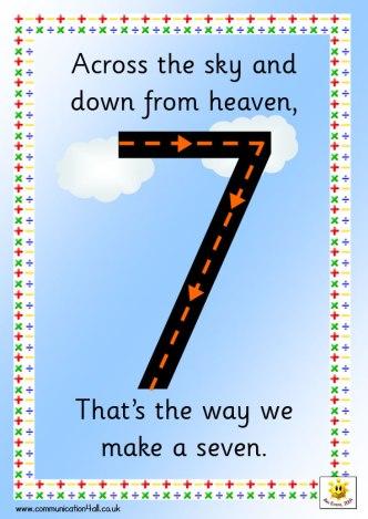 First to practise your number 7, can you have a go at writing it- remember ‘Across the sky then down from heaven, that’s the way we make a 7. To be successful today you should be able to: