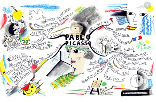 Now draw a mind map of information about Picasso. Draw him or write his name in the middle and facts about him around this.