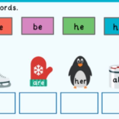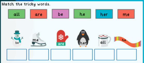 Can you have a go at practising the word, then writing it into a sentence. After, have a look at the picture below, can you find the tricky words 'he' and 'me' then match them?