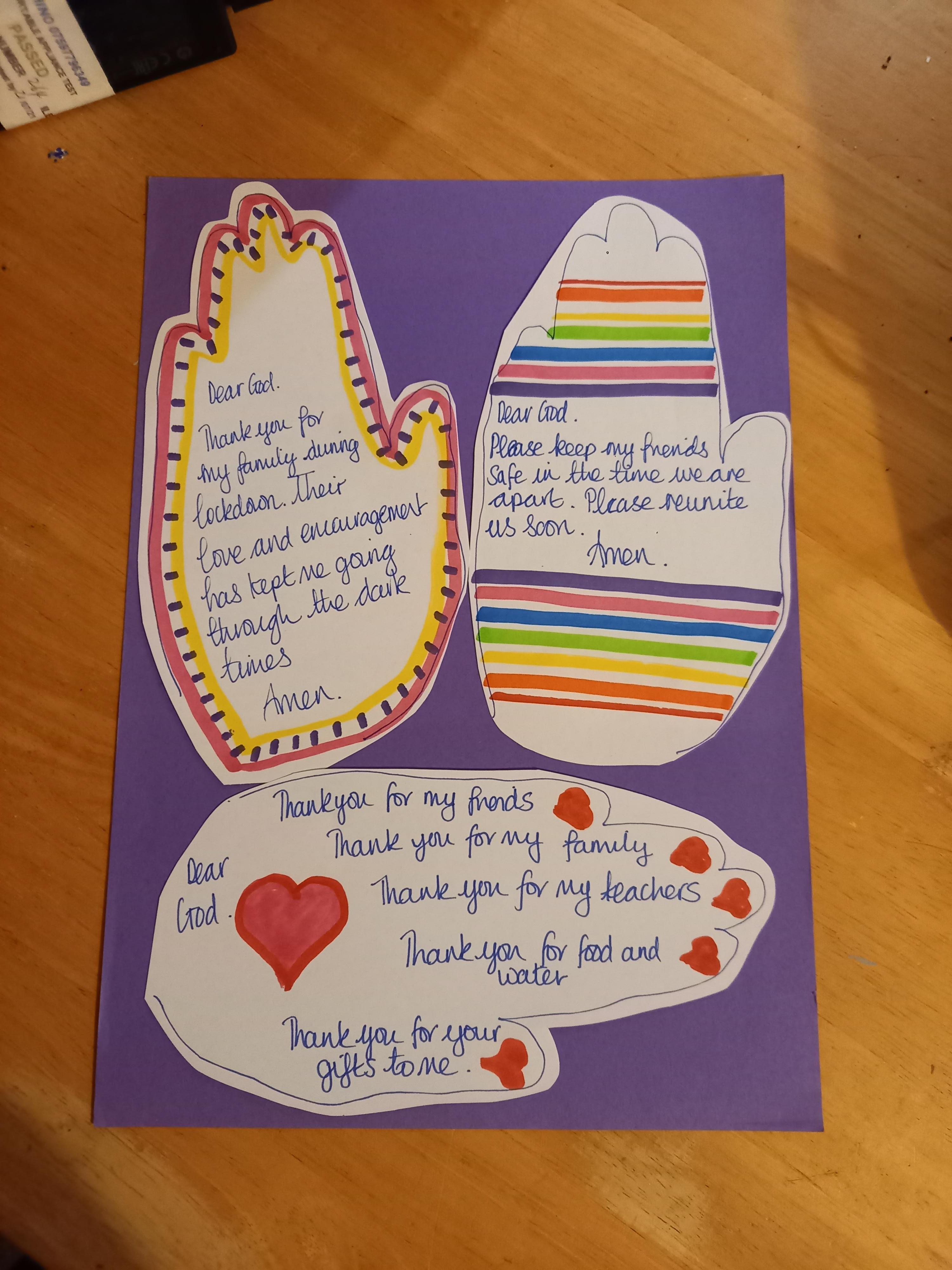 To link into our RE focus on how Christians bring freedom and justice, we would also like you to create a set of prayer hands that show clearly who you want to give thanks and praise to for helping to care and educate you.