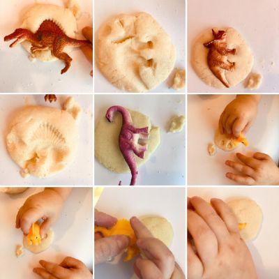 Now your task for today is to make your own fossil! You could use play dough like the example below or you could take your learning outside and create a giant fossil using natural materials, have a look at the example for some ideas!