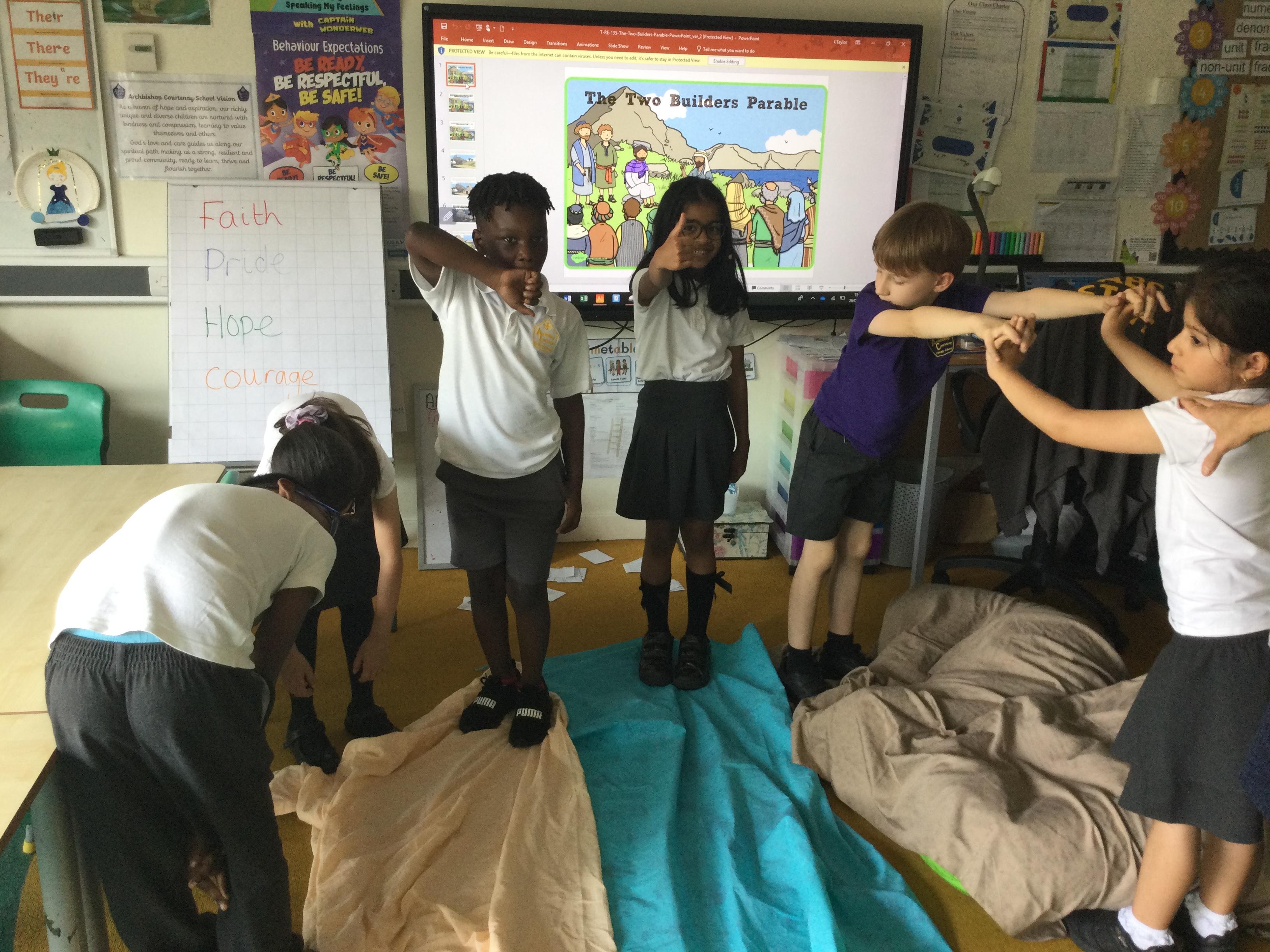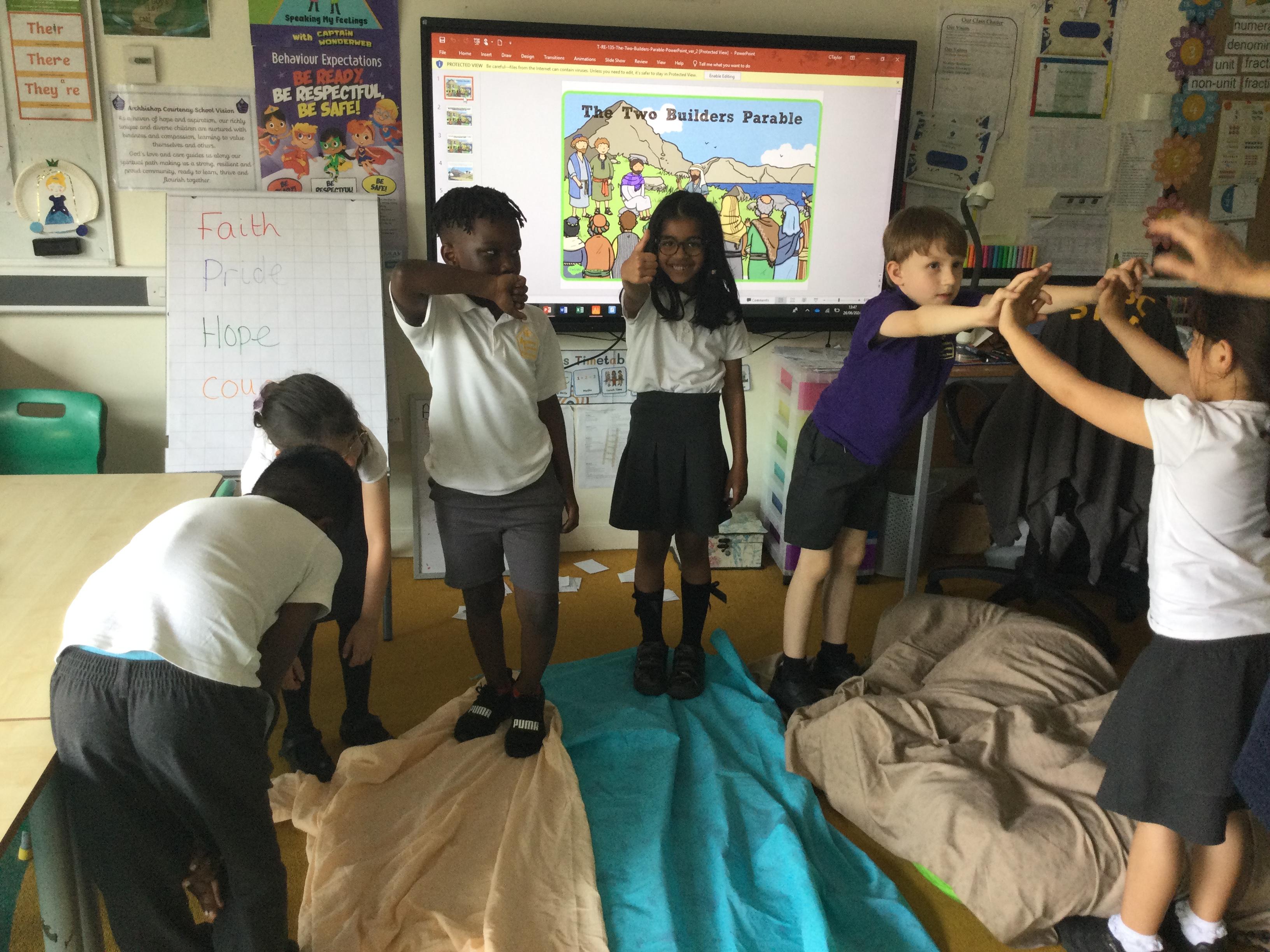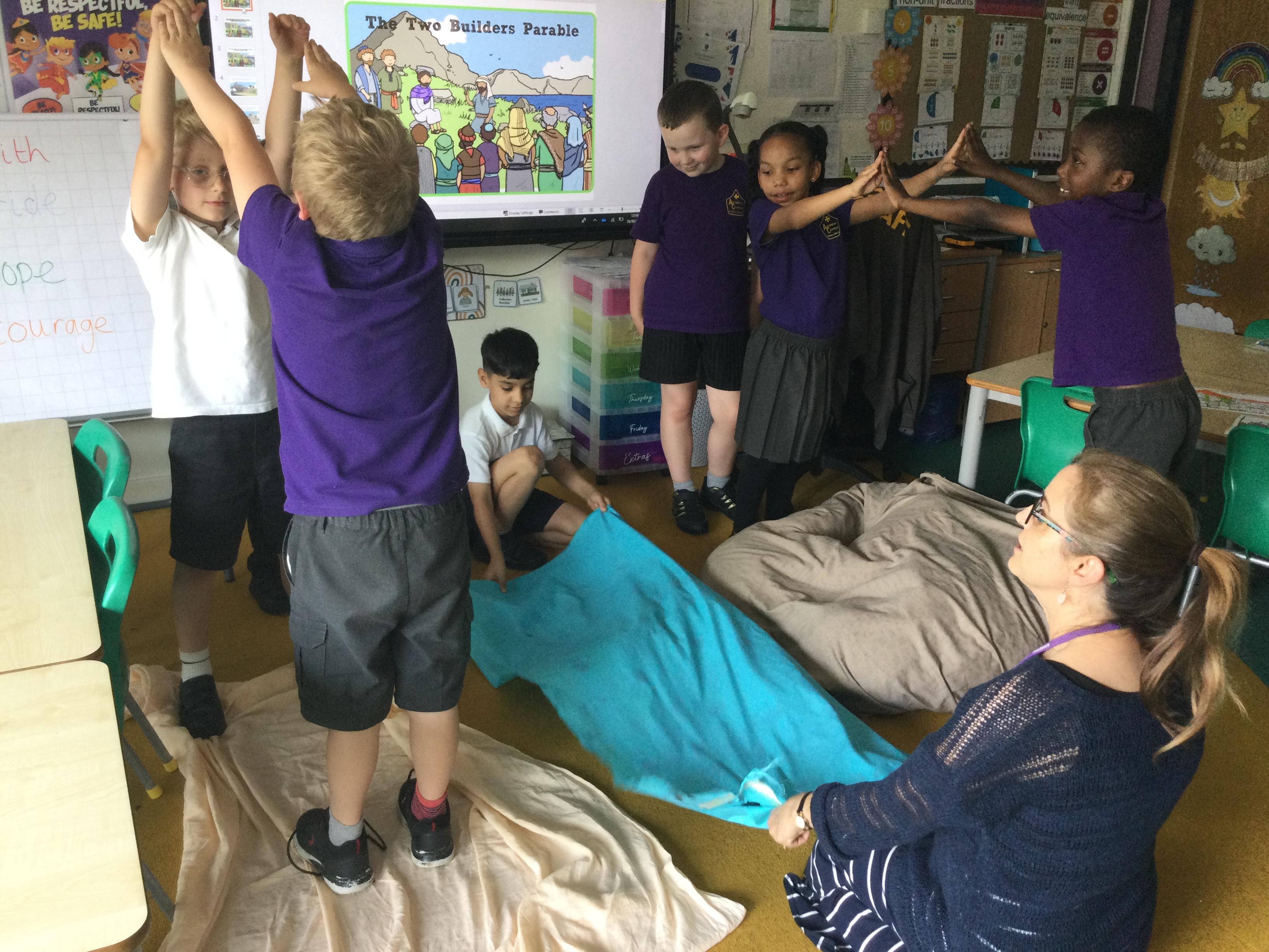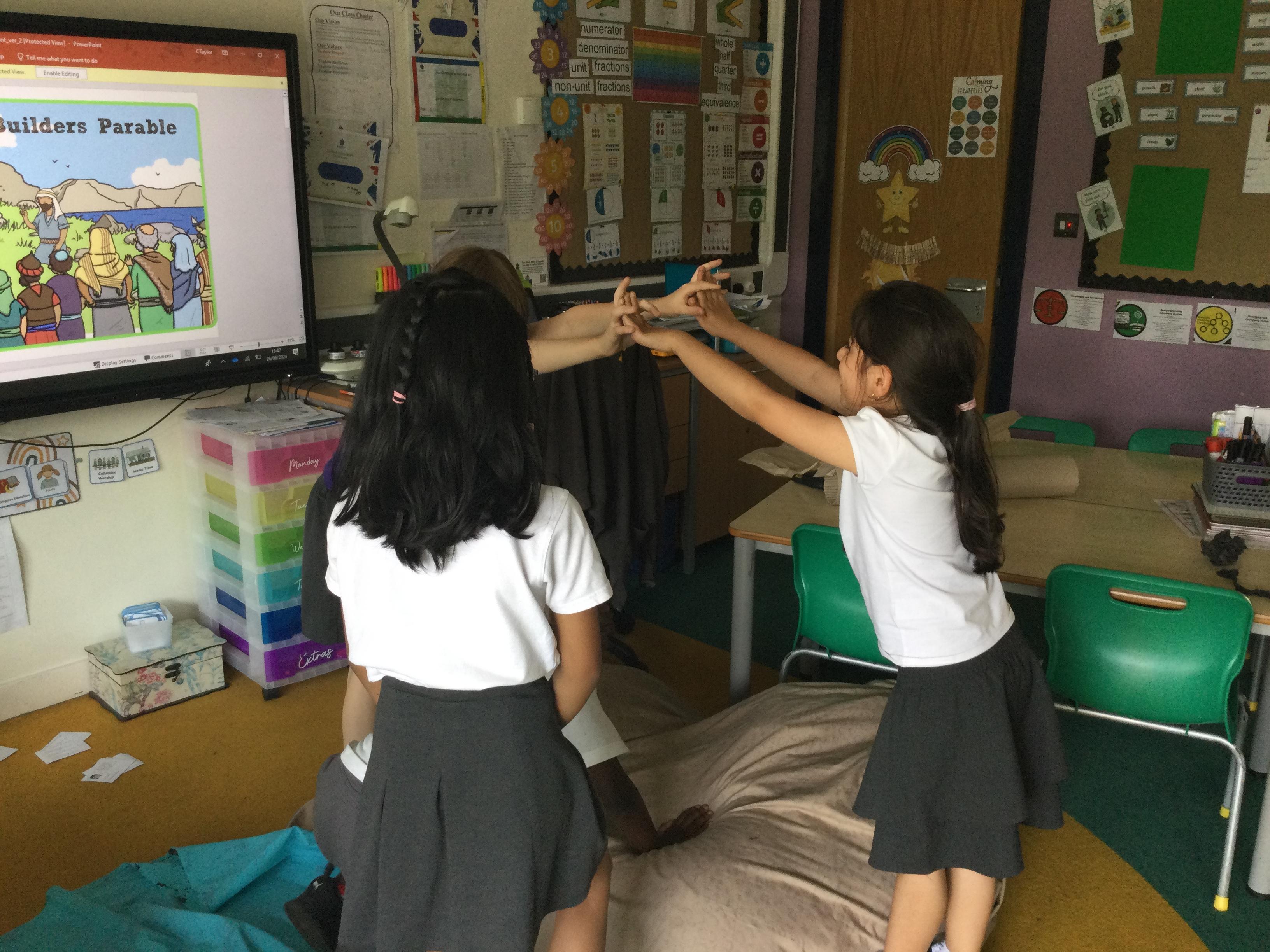 Frank class exploring their knowledge of 'The Wise & Foolish Builders'.