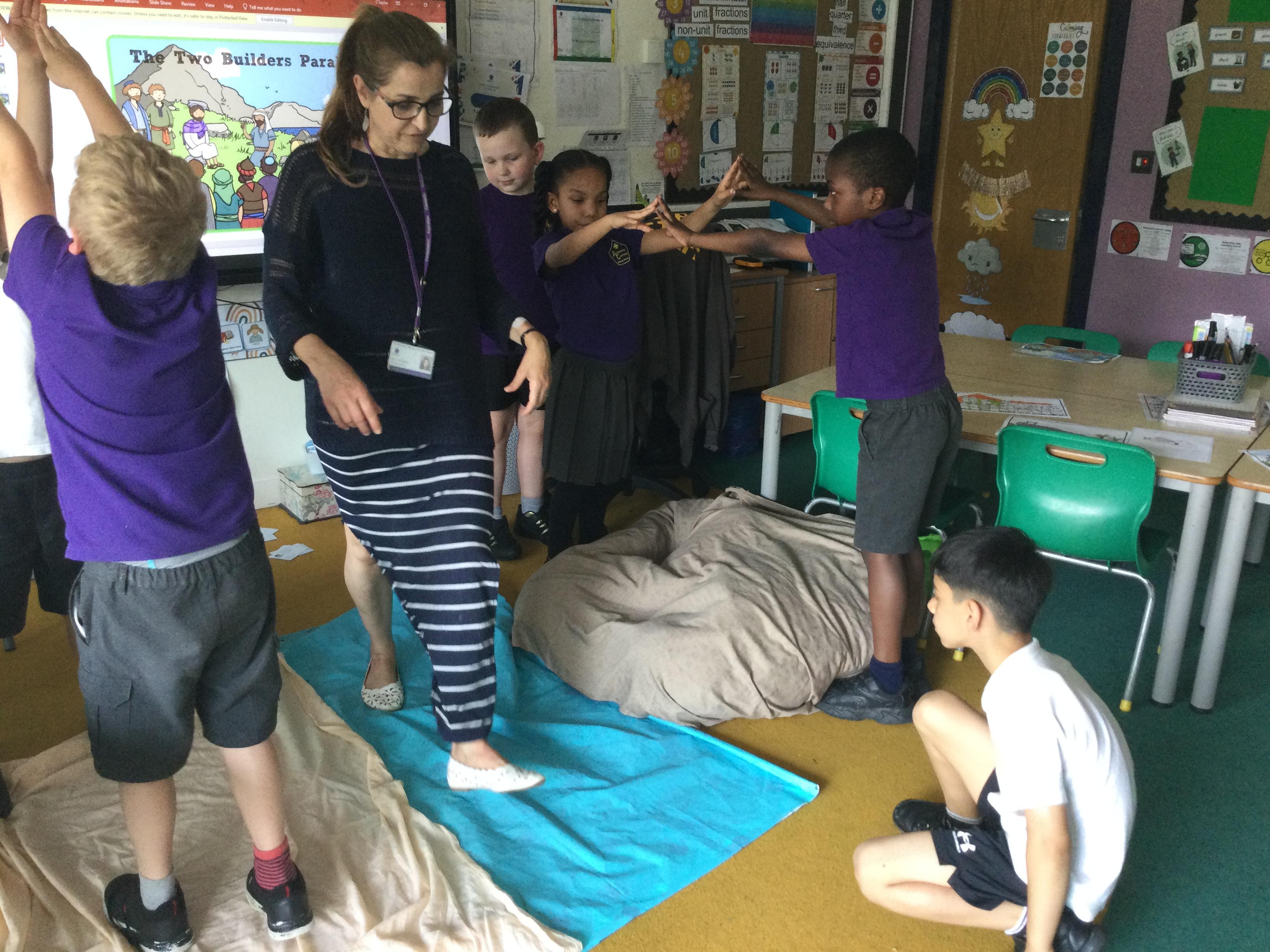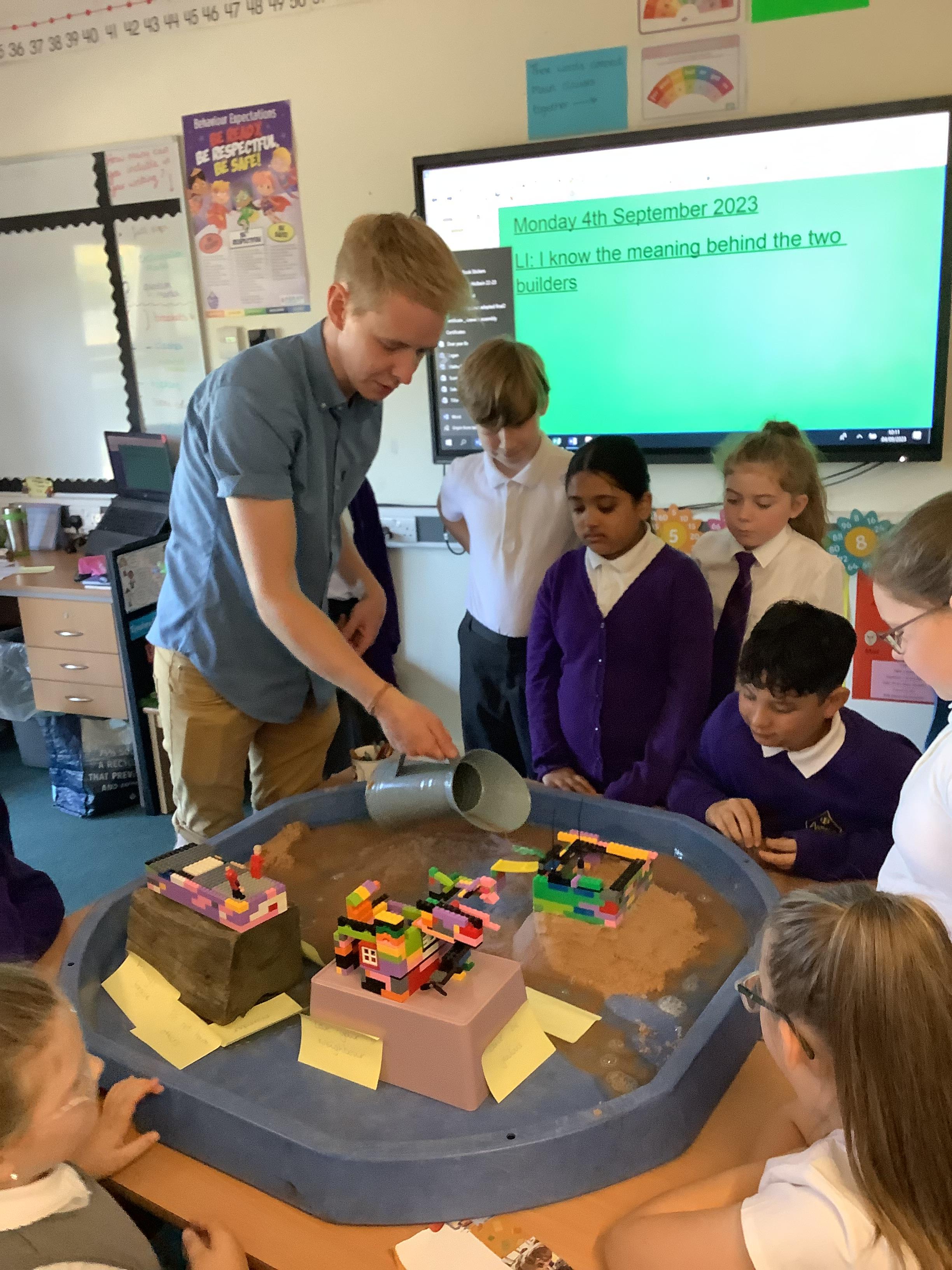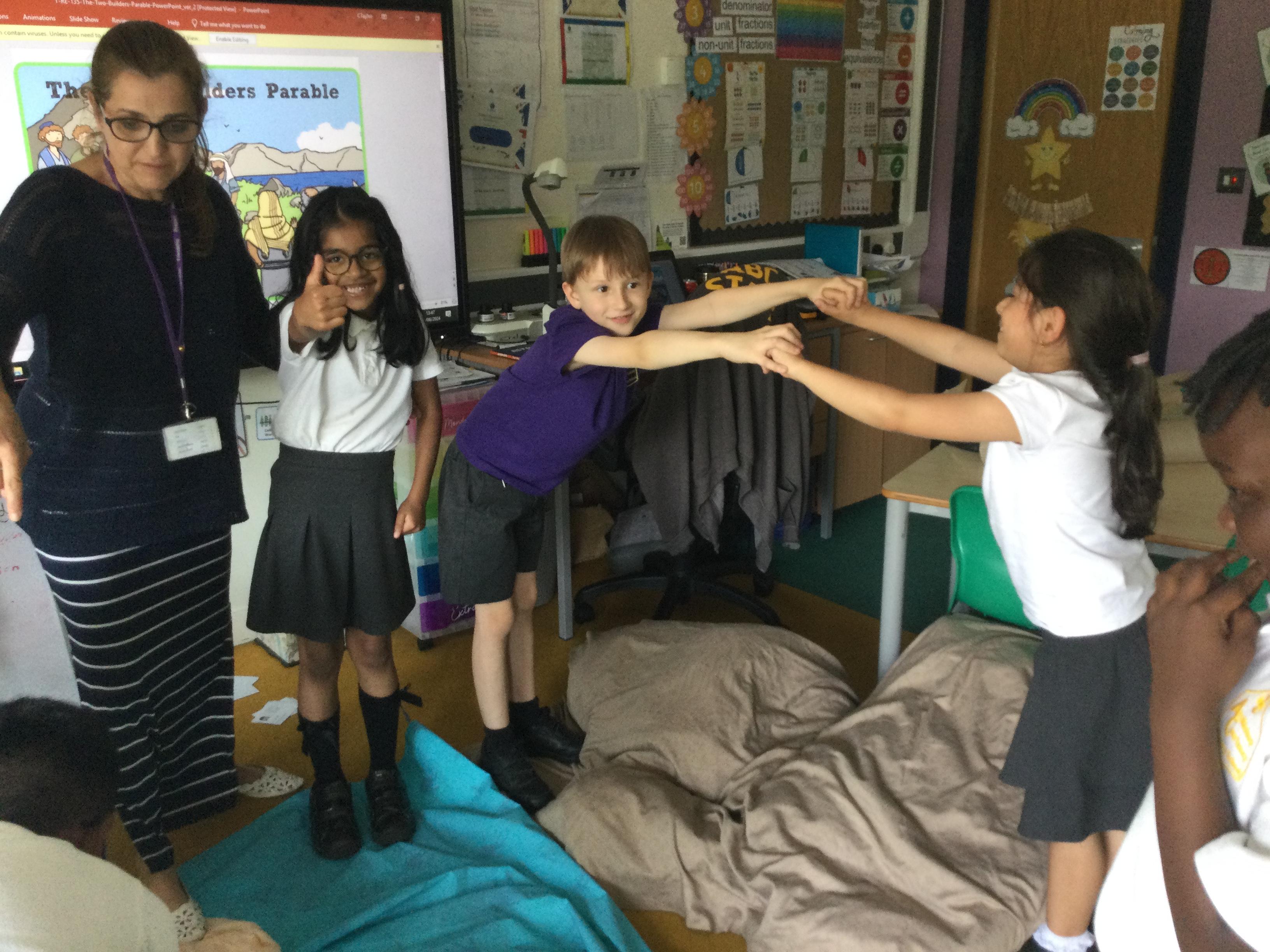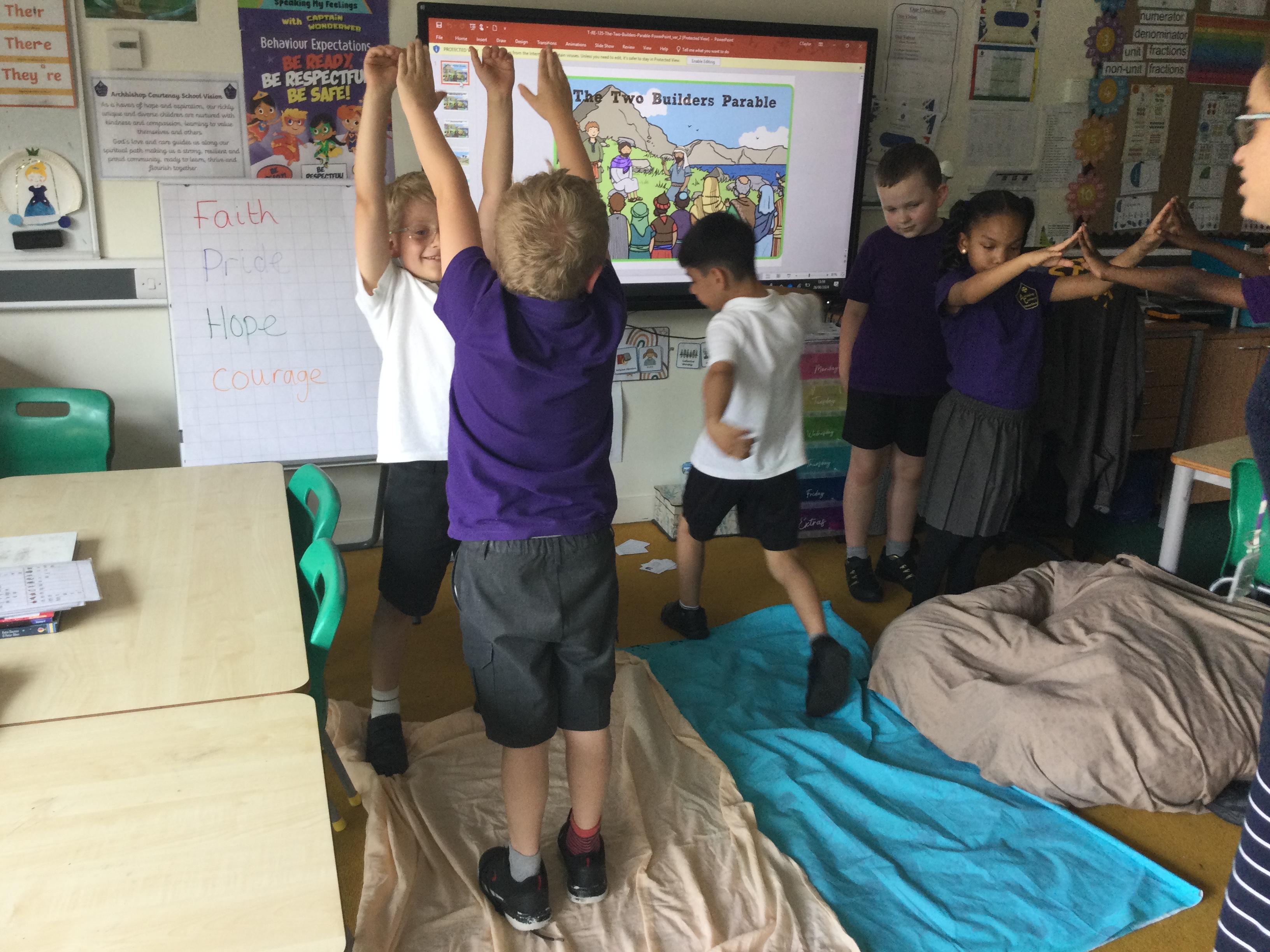 Frank class exploring their knowledge of 'The Wise & Foolish Builders'.