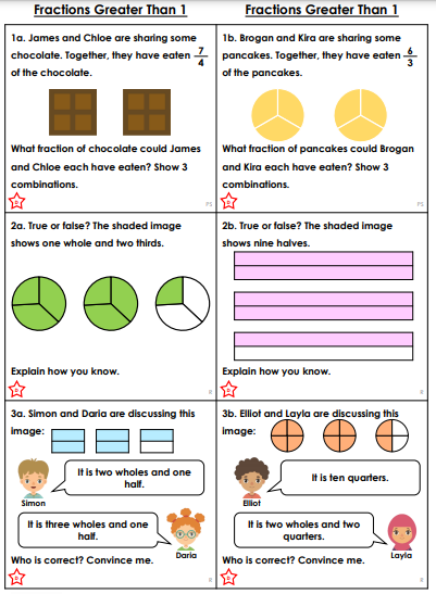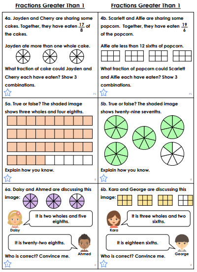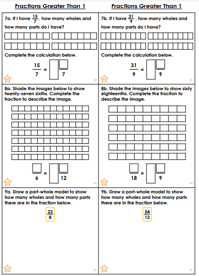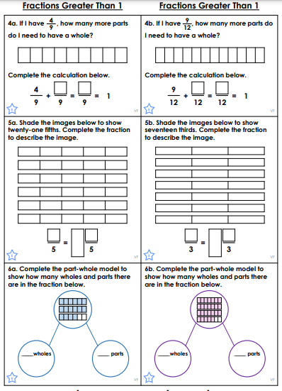 Welcome to today's work on fractions greater than one (improper fractions or 'top-heavy' fractions). Choose either bronze, silver or gold fluency and test yourself after with some bronze, silver or gold reasoning!