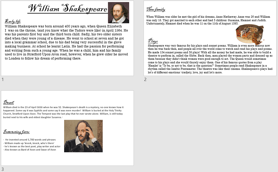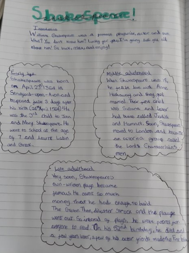 Today is an opportunity to finish your Shakespeare fact file. We appreciate that you have taken care over your fact files so today they need to be completed and edited. If you have finished yours and submitted it, I have returned it with some feedback to help you edit and improve.