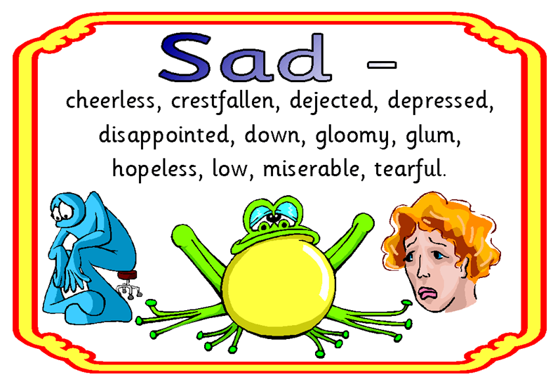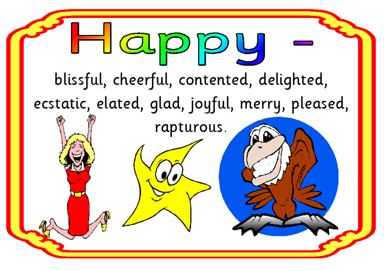 Instead of just using the same old feelings like happy, sad, scared, surprised or worried, try using some of these in your sentences to describe how you or your characters feel: