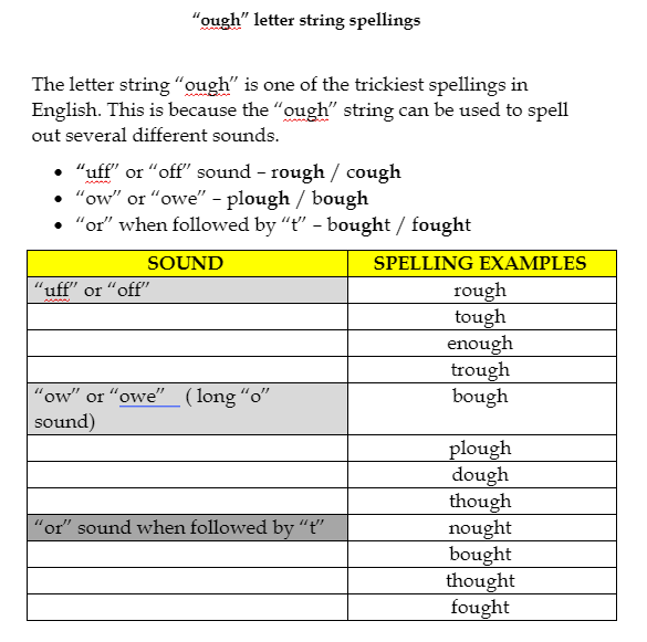 This week's spellings focus on the "OUGH" spelling rule. This can be tricky to learn so we have included a help sheet below to aid you with learning the rules using a few spelling tricks we've picked up along the years!