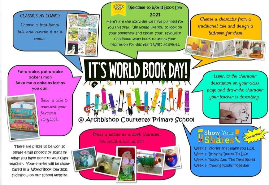 Today it is world book day, a global event happening all round the world! Books are so important, that allow you to explore worlds different to our own, a form of escapism! So, we are dedicating an afternoon to it. You can pick any of the activities below (more than one it you would like), but we would like you to complete the Potato Character activity. Have a look below to find out more!