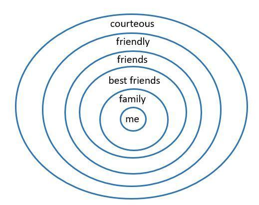 Look at the diagram. You are in the middle and those closest to you come next (usually your family). As the circle gets wider, your relationship with those people changes and becomes less friendly and more formal. Can you write examples of people within each circle.