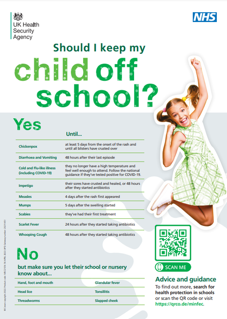 For guidance on determining whether your child should be absent from school due to illness, including how long they should stay home and additional advice for parents, please refer to the NHS resources available at the following link: