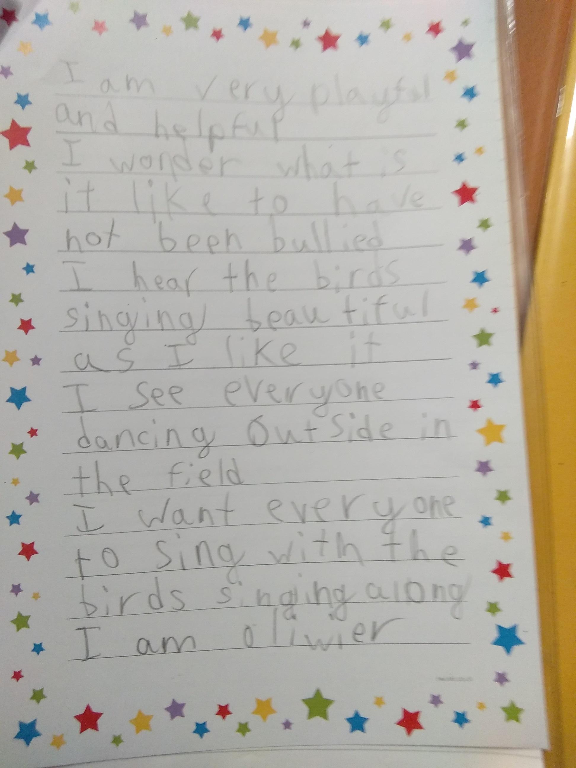 We are going to write a character description for one of the characters we looked at on Monday and Tuesday. Write two paragraphs to describe the feelings and emotions of the character you chose for your figure diagrams. Use expanded noun phrases you have learned. Include the information you collected from the story to improve your description! Here are some adjectives to help you: