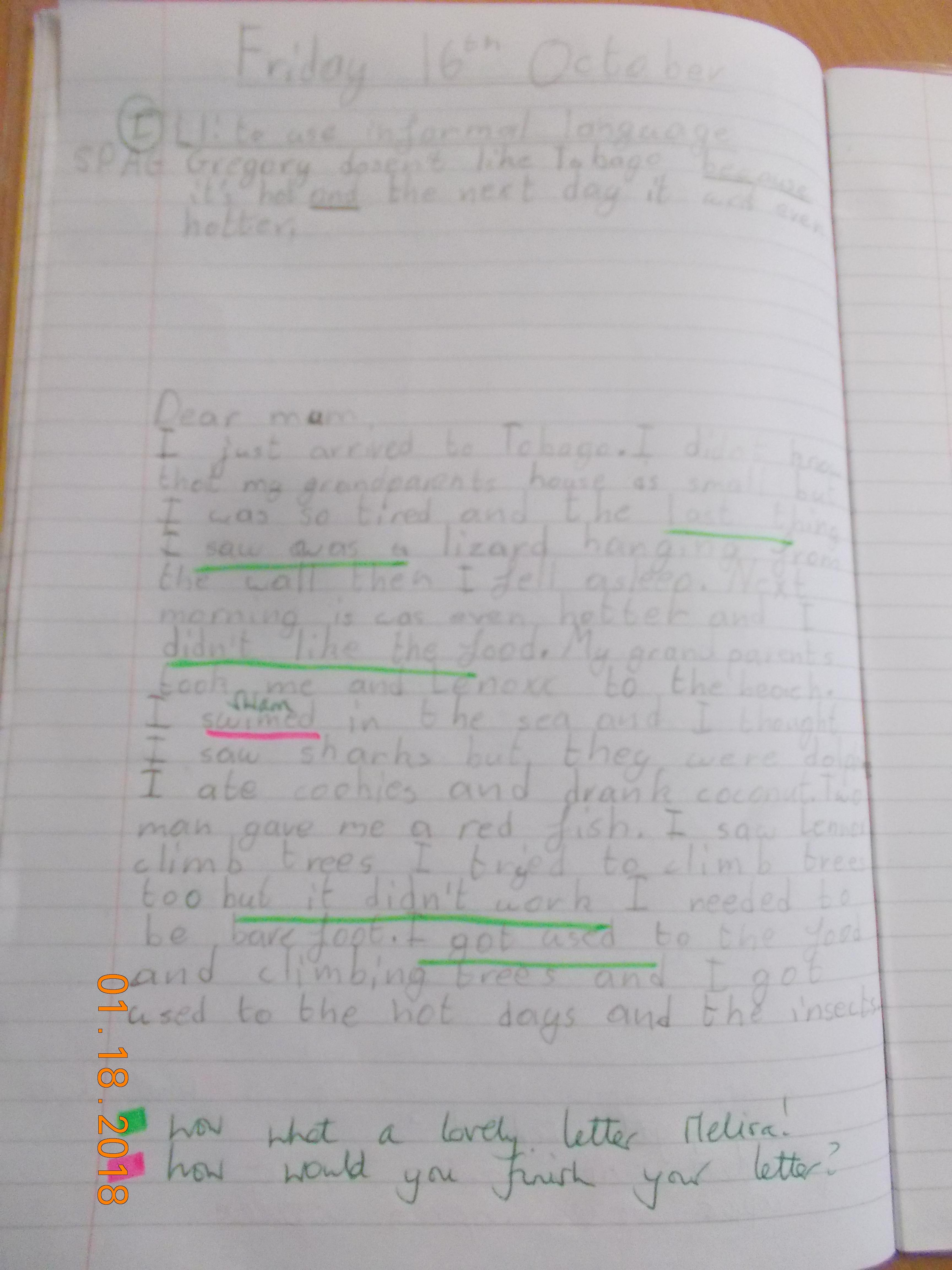 I hope you have had a good day and remember to send any work you have completed via email