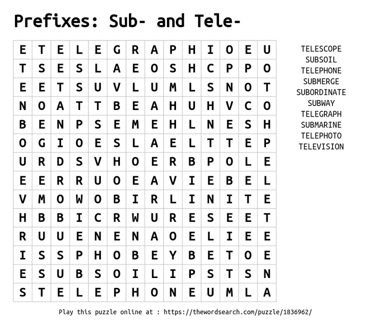 Year 3 : Prefixes: Sub- and Tele-