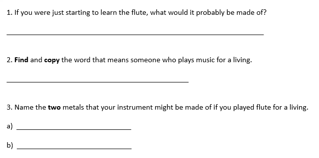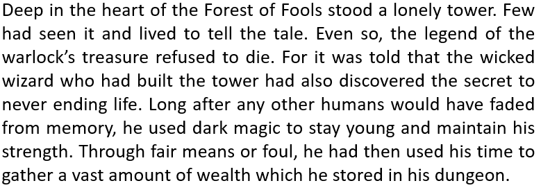 Read the following text a few times to an adult then answer the questions that follow it.