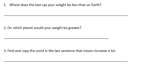 Remember this text from Tuesday? Re-read it a few times to an adult. Then answer the new questions below.