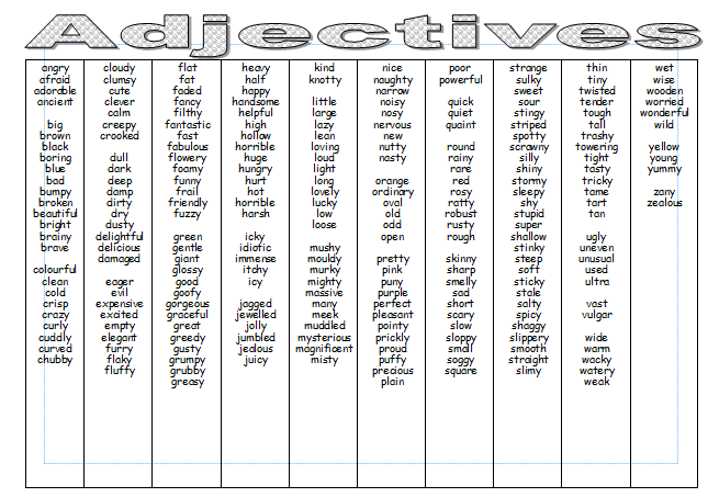 Can you find more adjectives and verbs to add to your list?