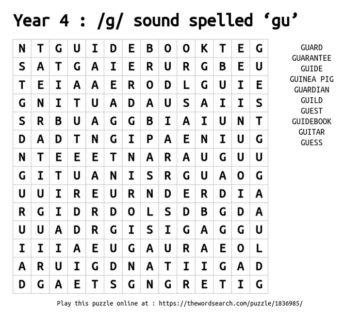 Year 4 : /g/ sound spelled ‘gu’