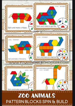 Have a look at the zoo animals created from shapes. Can you create a zoo animal from shapes? Can you name the 2D shapes?