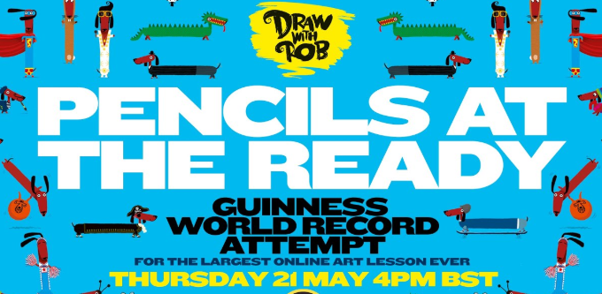 Don't forget to log onto the online Art lesson at 4pm today. Have a look at the top of this page to be part of the biggest art lesson in the world from illustrator Rob Biddulph.