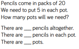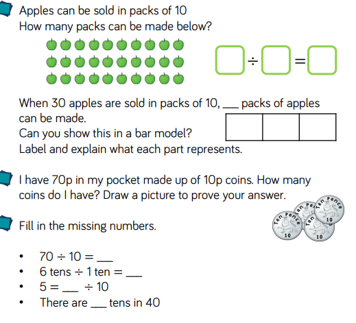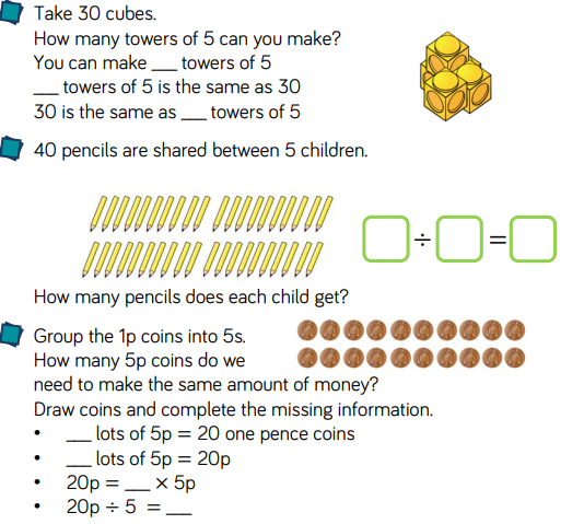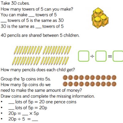Year 1's have a look at this linkhttps://whiterosemaths.com/wp-content/uploads/2019/SoLs/Primary/SOL-Year-1-2018-19-Spring-Term-Block-4-FINAL.pdf