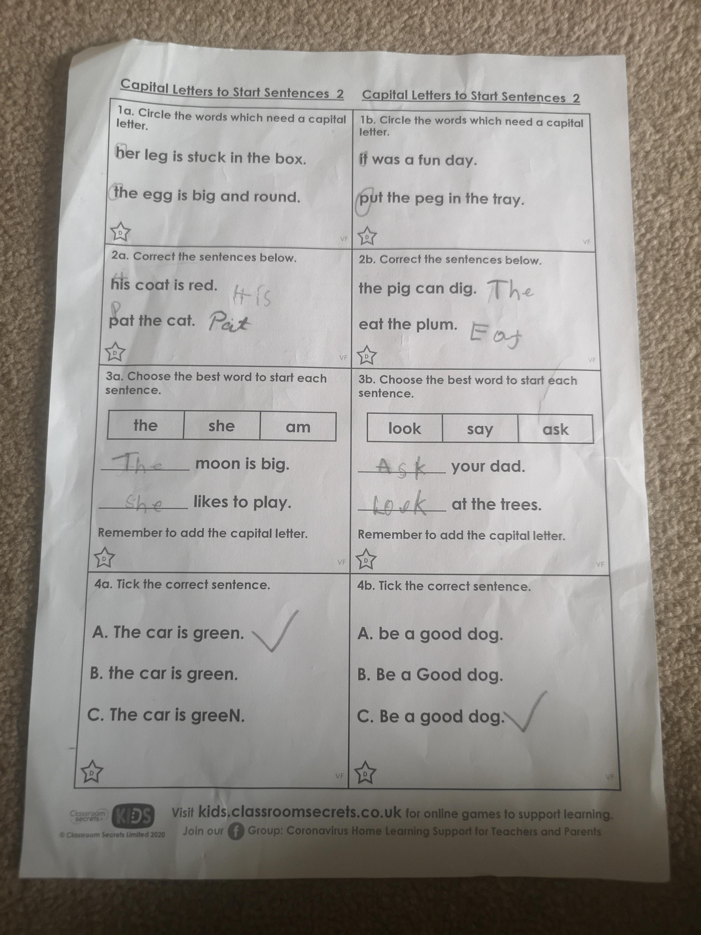 and then write about what you are doing at home and you could write something each day. Don't forget capital letters, full stops, ? ! conjunctions - and , because, so, if, when,