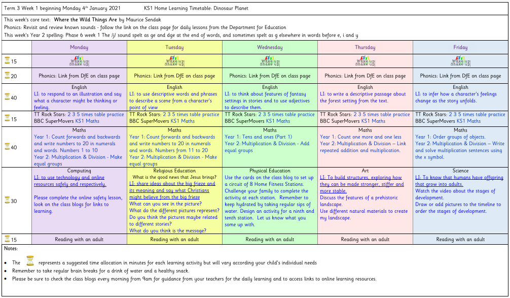 Good morning! We hope you are looking forward to a new week of learning! This week we will have live sessions on Teams every day. Use the Teams schedule and the weekly timetable to help plan your days.