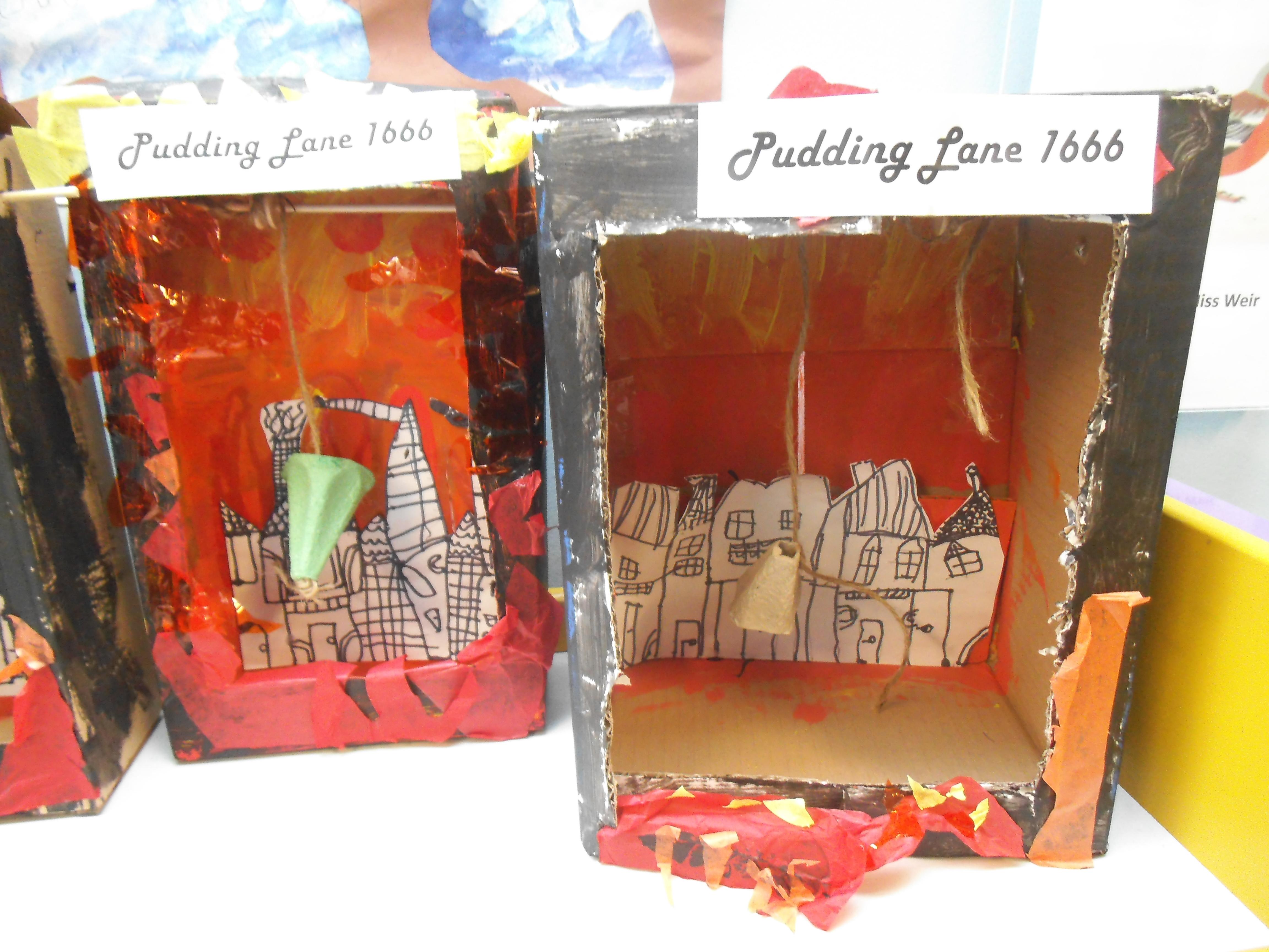 It has been another busy week in Chaffinch class this week. We have completed our Design Technology project making Dioramas to show Pudding Lane in 1666 where the Great fire of London started. We were able to make a winding mechanism for a water bucket to help douse the flames.