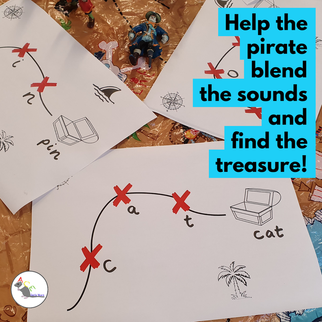 For this activity draw a pirate map, perhaps a grown up at home can write some letters for you. Then on the treasure chest or the ‘x’ you can write what the word is once you have blended the sounds.