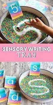 There are some images I have uploaded which are examples of multi-sensory ways we can practise handwriting. You can lots of things you may find in your home such as; rice, flour, salt, sugar, shaving foam or lentils.