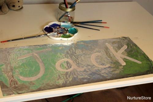 As well as practising with pens or pencils or any other writing equipment, I have also found some other fun ways to help us with our number formation (and our counting too), for this you will need some foil. Here they are: