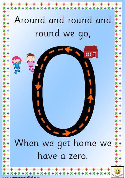 Today’s number combines two numbers that we have been learning to write and it is number 10. To write a 10 we need to use the numbers 1 and 0. Now remember the number rhyme for 1 is ‘start at the top and down we run, that’s the way we make a 1’ and for 0 it is ‘round and round and round we go when we’re home we have a zero’.