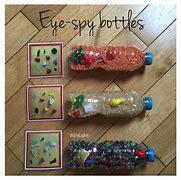 This is an I-Spy bottle: you need a bottle, some rice or small beads, and then either pictures of objects or small objects to put inside. Then you shake it and say what you can see and have a go at writing the word.