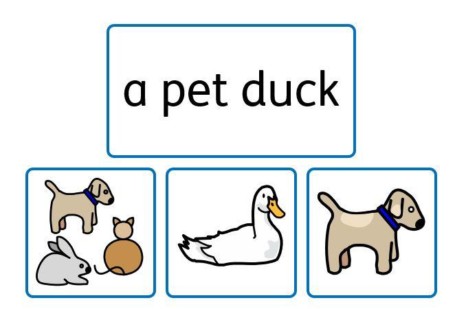 Maybe you could have a practise at reading the flashcards, perhaps you could try writing the words too. Can you read the sentence and choose the correct picture to match it?