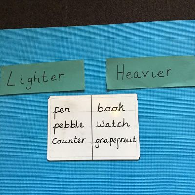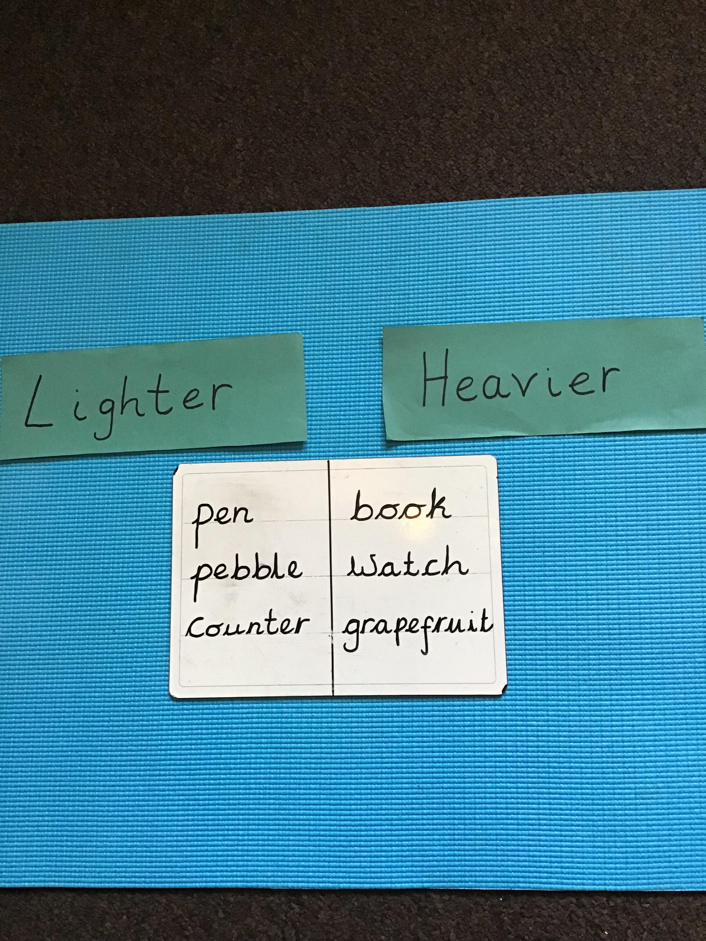 If you missed yesterday’s TEAMS session you can catch up by watching the video. Yesterday we looked at comparing the weights of objects. Can you remember what the scale was called that I used? That’s right a balance scale. What words can we use to describe the weight of an object?