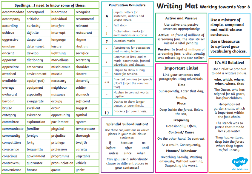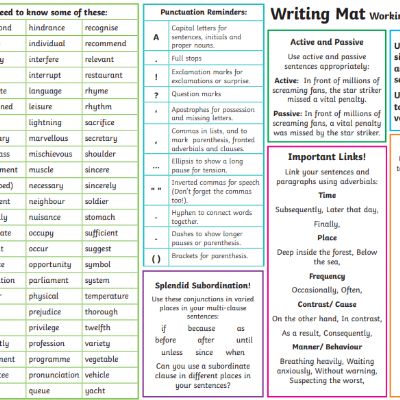 There are also a range of helpful writing mats to help you structure your sentences and choose different vocabulary!
