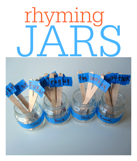 3) Rhyming jars: Think of a word, then write all the words that you can think of that rhyme with it on a stick (or it could be paper).