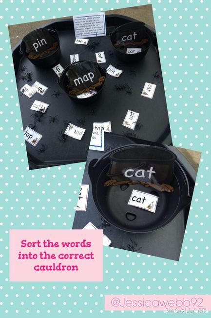 1) Rhyme Sort: Choose how many pots you would like. You could then use objects, pictures or words and sort them by rhyme.
