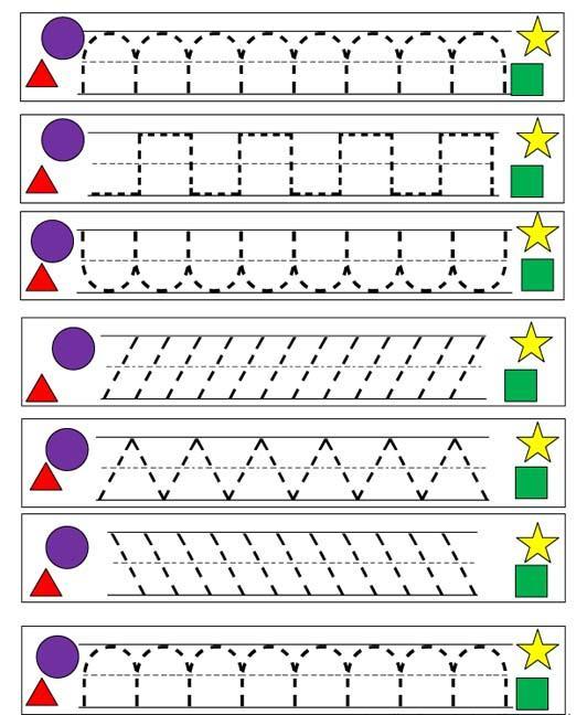 Yesterday we practised drawing different lines, today we are going to practise some more! Remember before you practise writing them with writing equipment why not have a go at making the shapes with your arms.