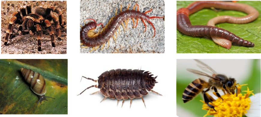 Click the image to open a presentation on invertebrates. Then try the task below. Use words and pictures in your answers! Can you name the animals in the images here?
