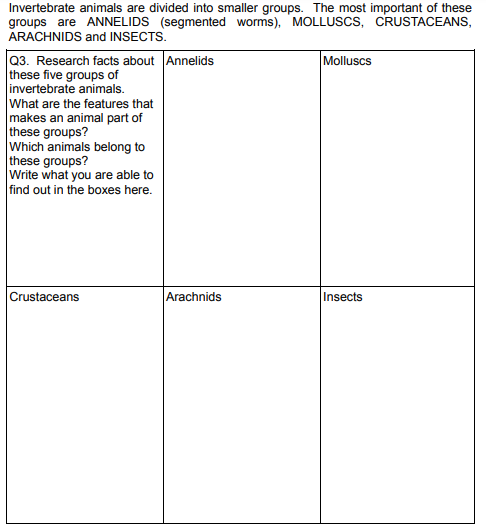 TASK: Use the presentation you have watched to answer the questions with sentences and pictures. Name your invertebrates and make your research colourful!