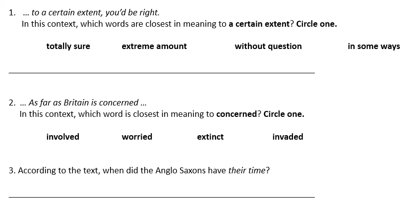 Look at the new text for today and read it aloud to an adult, aloud to yourself and then quietly in your head before you start answering the questions.