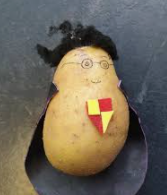 Today for World book day we would like you to get a potato and dress it up to look like your favourite book character. Think about their main features, do they always wear the same thing, what is their hair like?