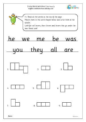 -You could then have a go at filling the blank boxes in with the tricky words. Remember to look at the shape of the box carefully, remember if it is a taller box then it is a tall letter!