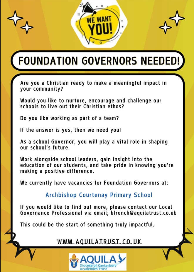 My daughter goes to Archbishop Courtenay and I fully understand the importance of parents having confidence in the school, something that I hope I can help with through giving my all on their behalf. Whilst we have made good progress, I am confident that through governors supporting our excellent leadership team and staff, we will see the school improve further. I know that with parents, staff, governors and children pulling together, we can make Archbishop Courtenay a school that the community can be proud of.