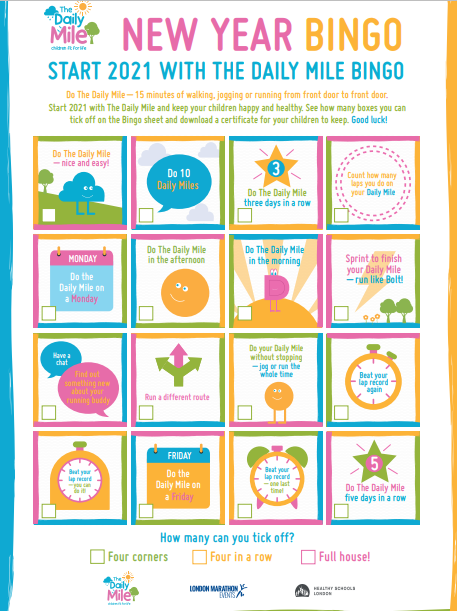 Life in lockdown is hard and challenging in may different ways. We hope that through joining in with The Daily Mile Bingo Board - you will start to feel not only physically better, but also mentally and emotionally better too!