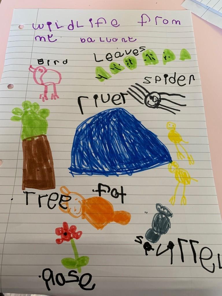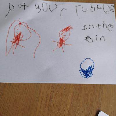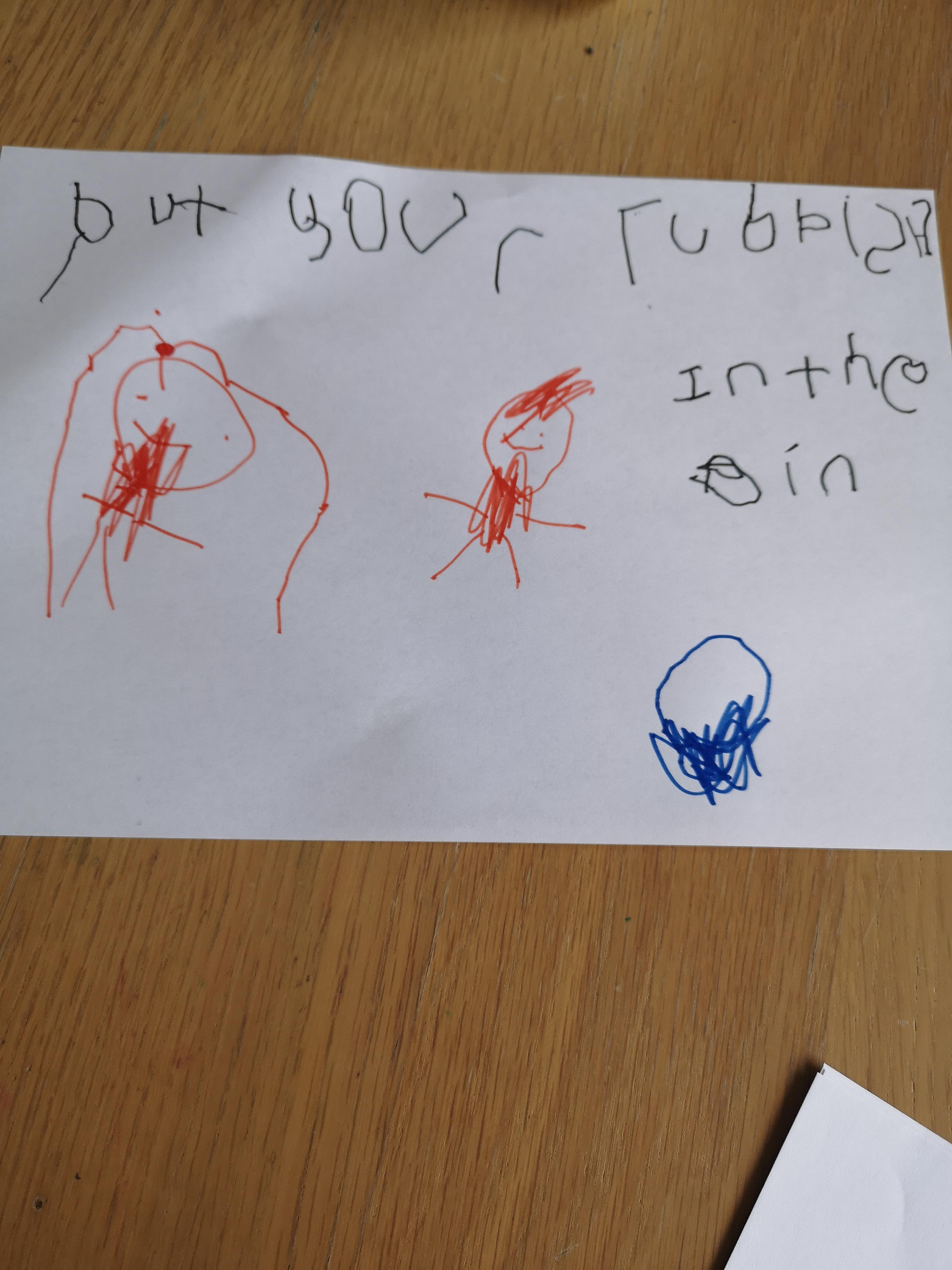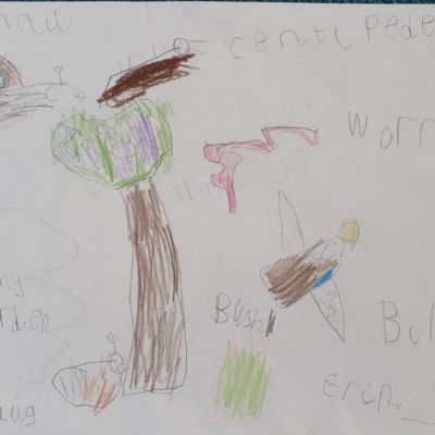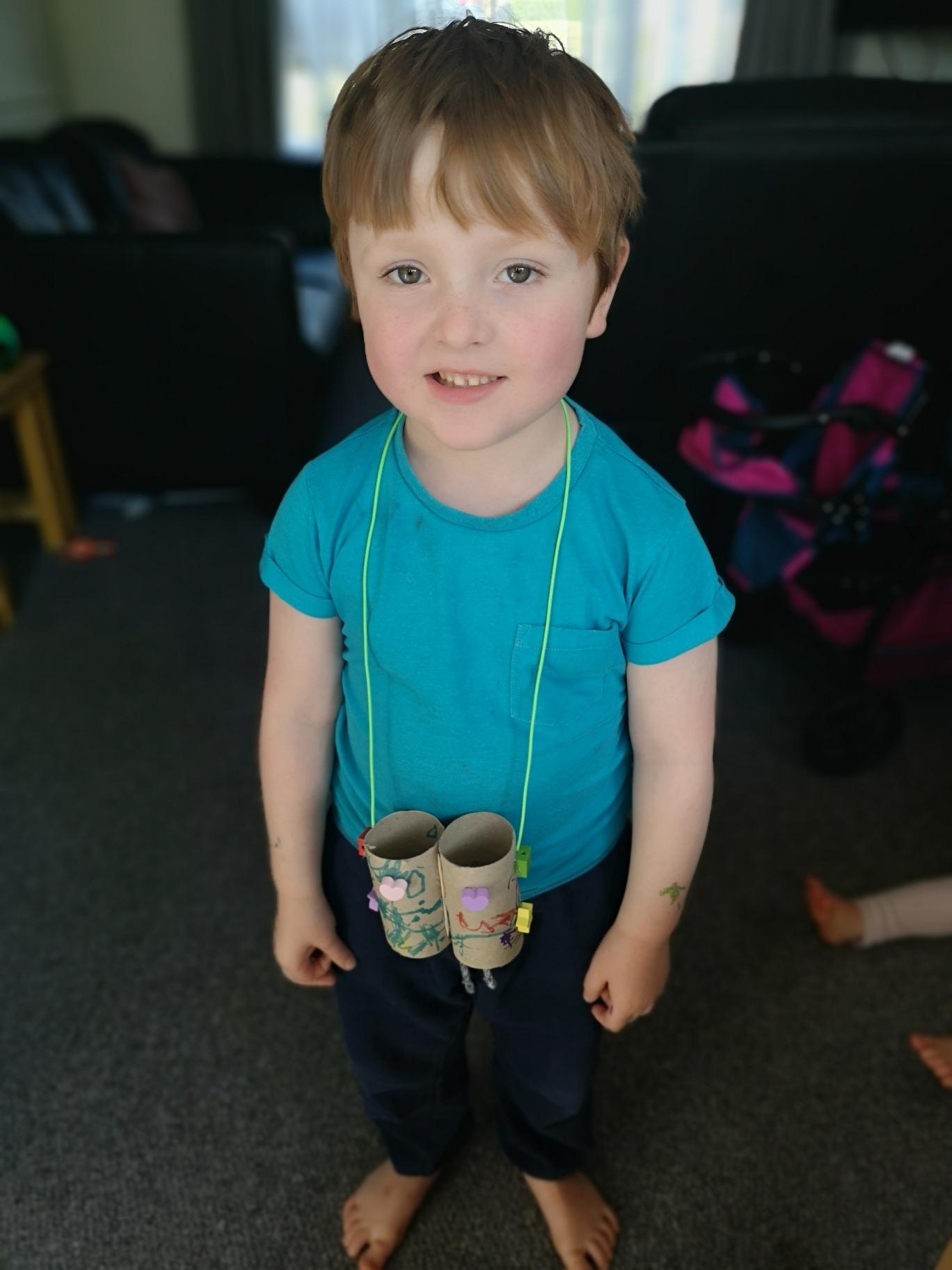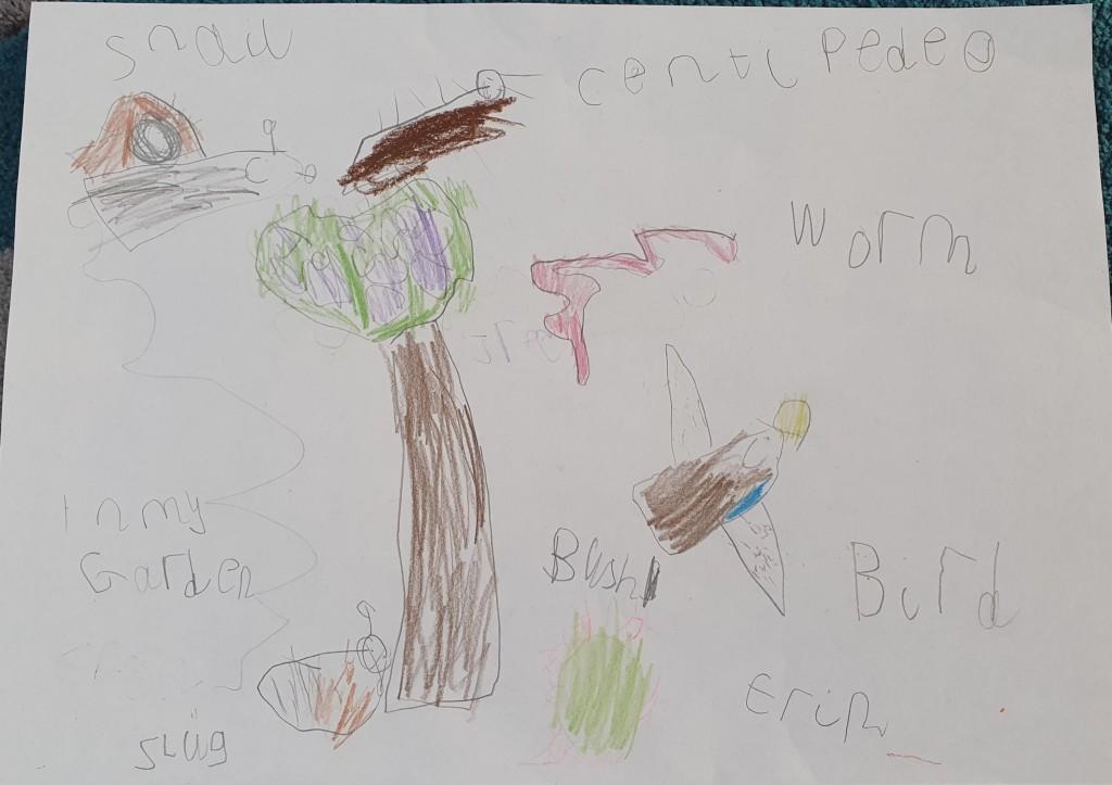 Riley has been busy making binoculars, well done for using all the skills and techniques needed to join these together. He then drew a picture and wrote a label for the wildlife he spotted in the garden.