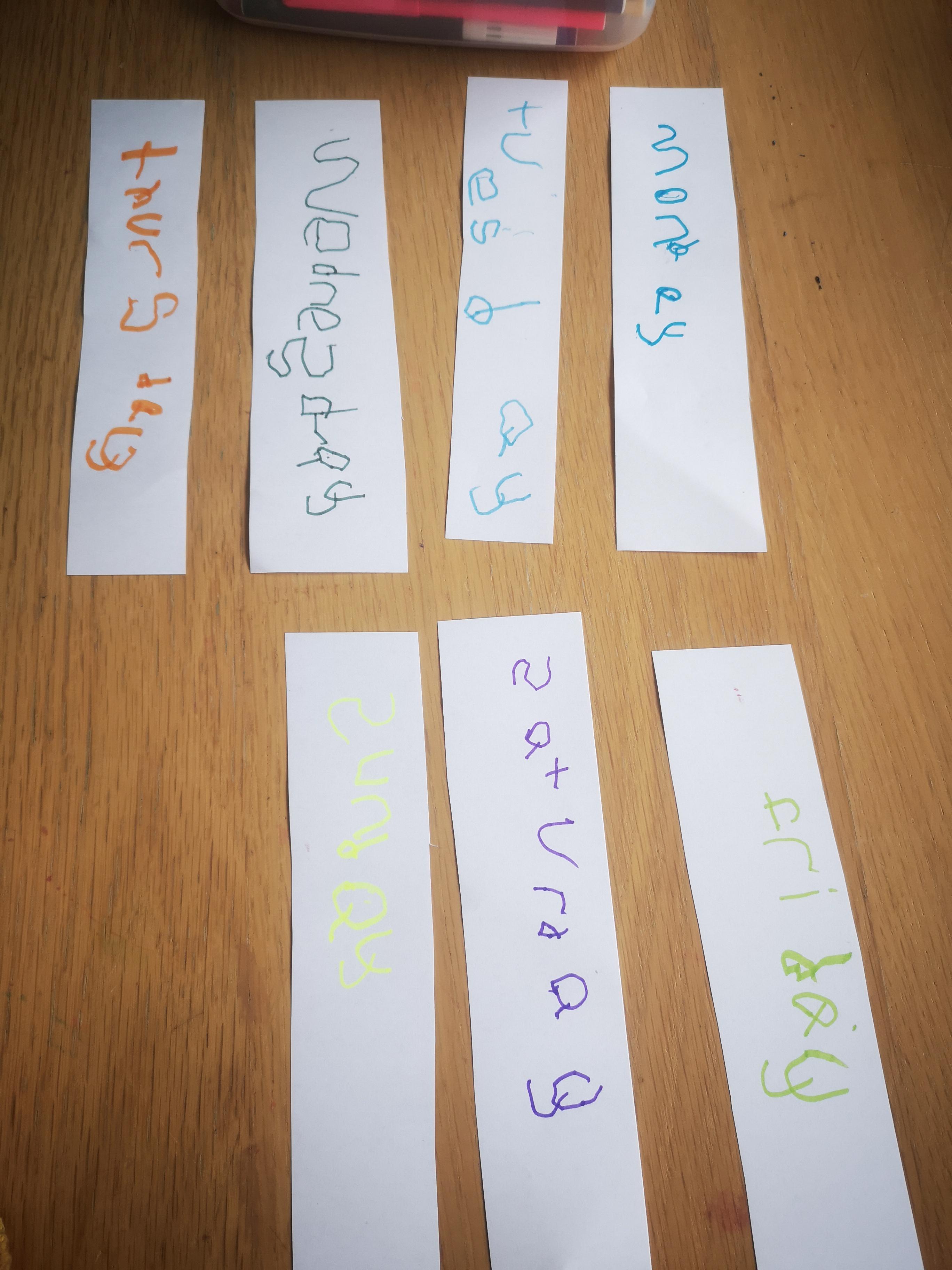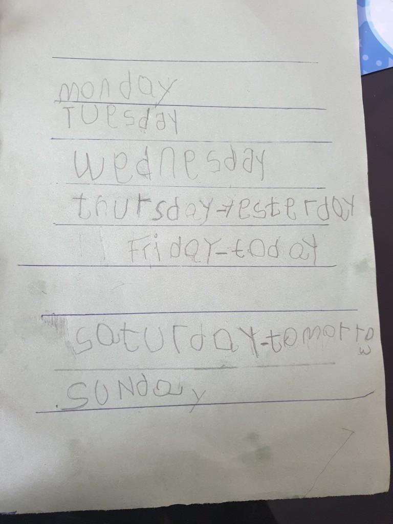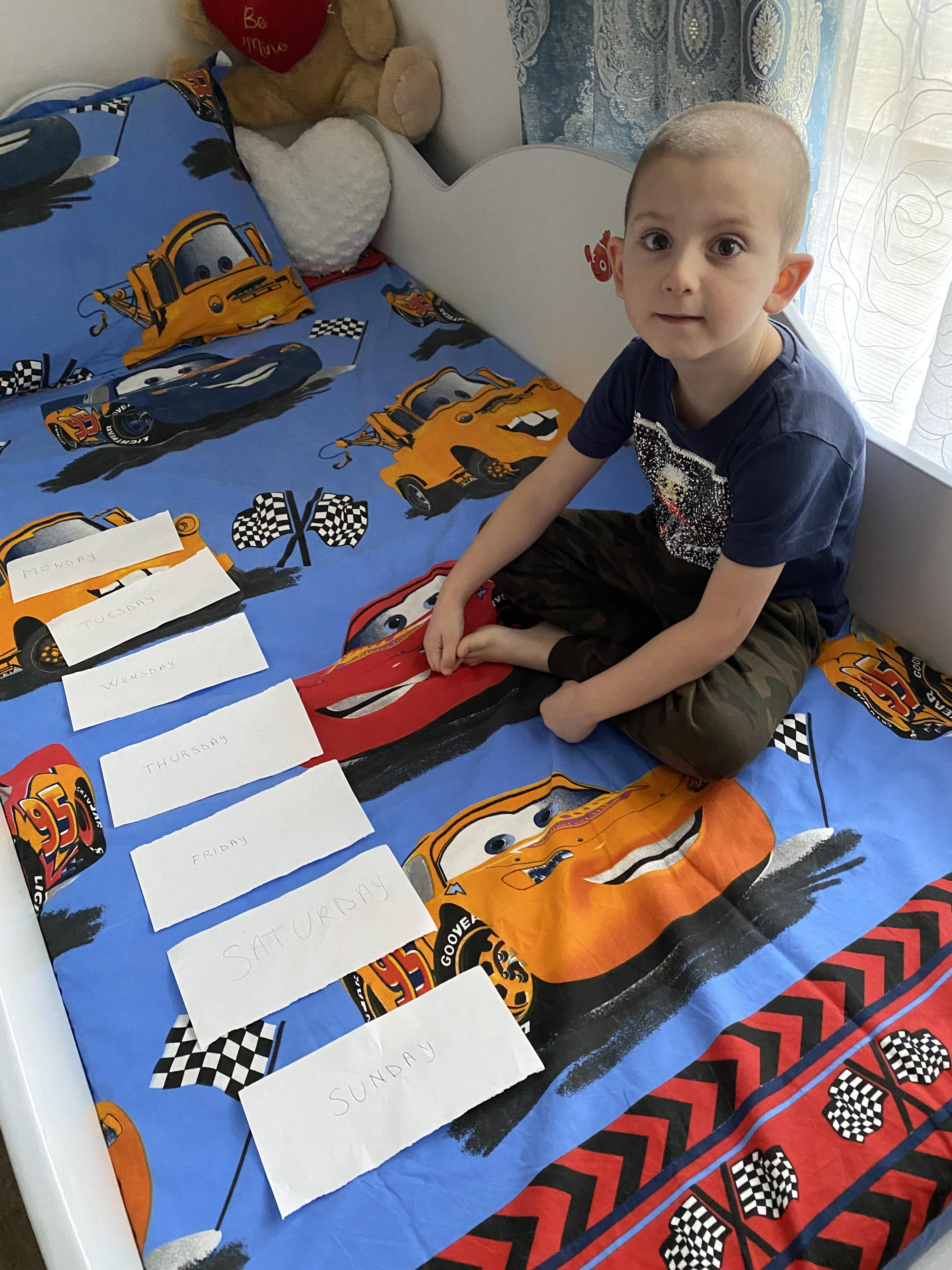 Orest has been learning the days of the week. He has been learning a song about the days of the week too. Well done!