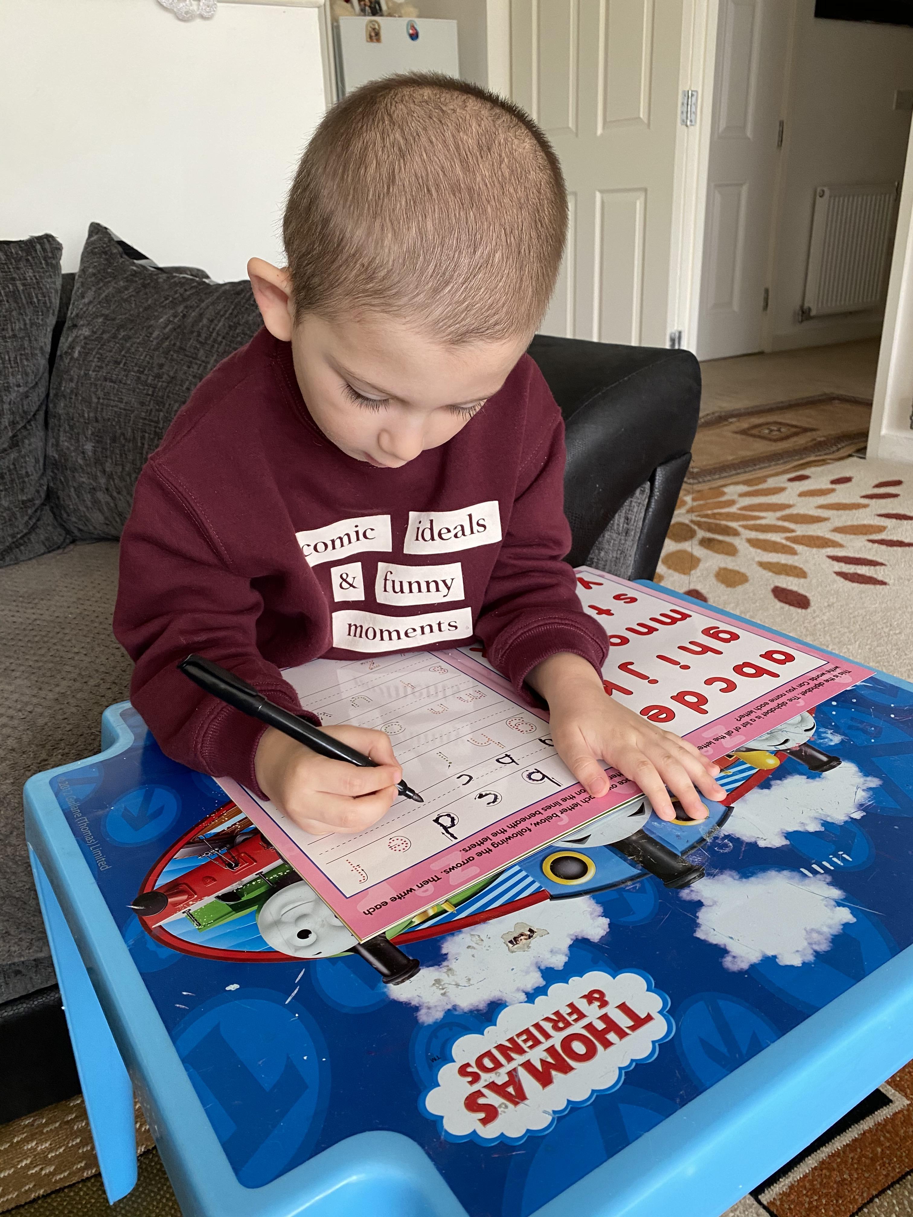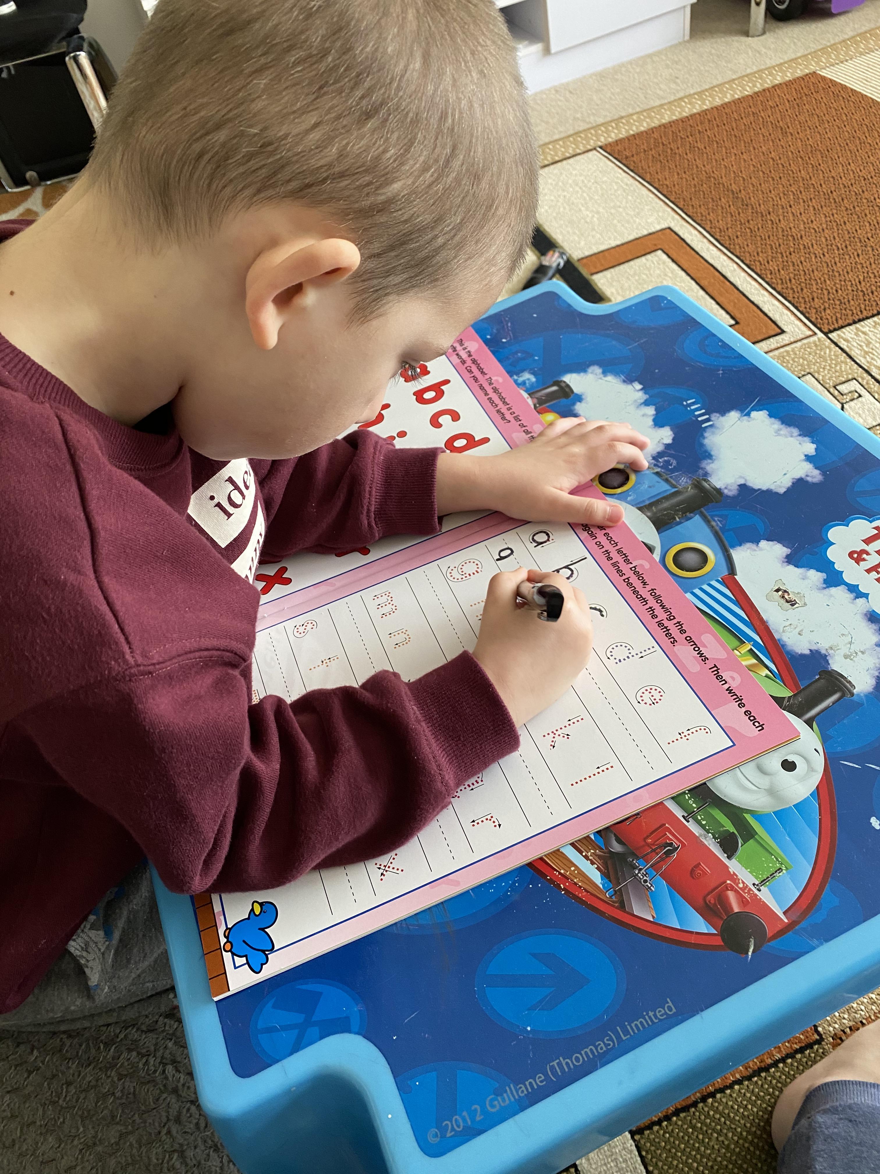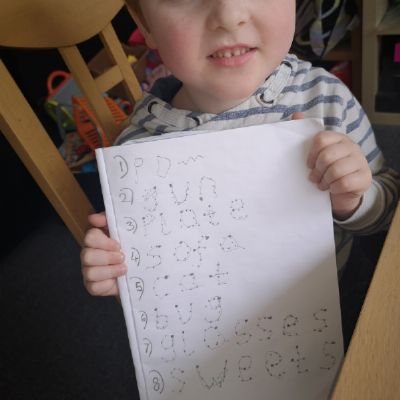 Wow, look how busy Riley has been with his home learning pack. Well done!